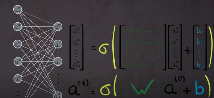 Un réseau de neurones artificels est constitué d'au moins une couche d'entrée, une couche cachée et une couhce de sortie. Chacune comprend un nombre donné de neurones, les neuroens de chaque couche sont connectés aux neurones de la couche suivantes. Les données en entrée activent la couche d'entrée, qui activent à leur tour la couhce suivante et ainsi de suite. On associe un poids à chaque lien (et un biais, on verra ça par la suite). Un algorithme détermine les poids en focntion des données d'apprentissage. Une fois le réseau entrainé suffisament il peut tariter des données du même type que celles sur lesquelles il a étét entrainé